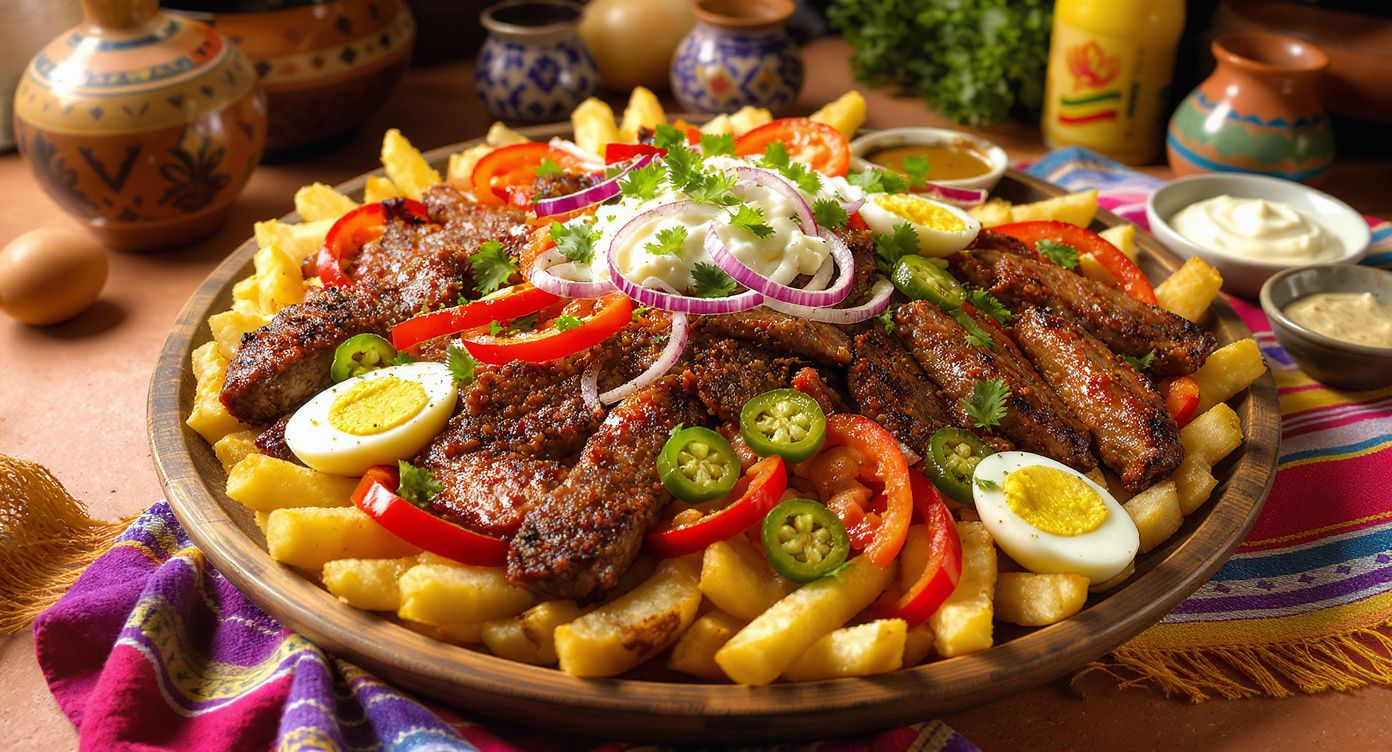 This classic Bolivian platter is a hearty, protein-rich dish that combines tender strips of beef, sliced sausage, and fried potatoes with a medley of fresh vegetables. It provides a satisfying balance of macronutrients, while the tomatoes, onions, and peppers contribute antioxidants and essential vitamins.
